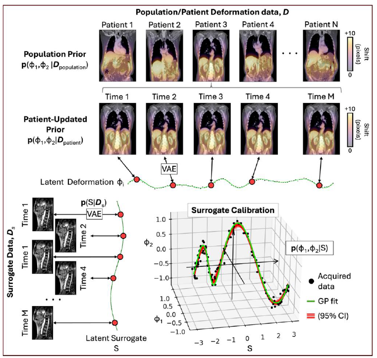 1. Develop Bayesian models using VAEs to learn optimized patient-specific internal motion priors from high-dimensional 4D imaging deformation fields.